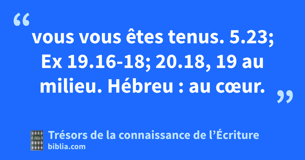 vous vous êtes tenus. 5.23; Ex 19.16-18; 20.18, 19 au milieu. Hébreu : au cœur.