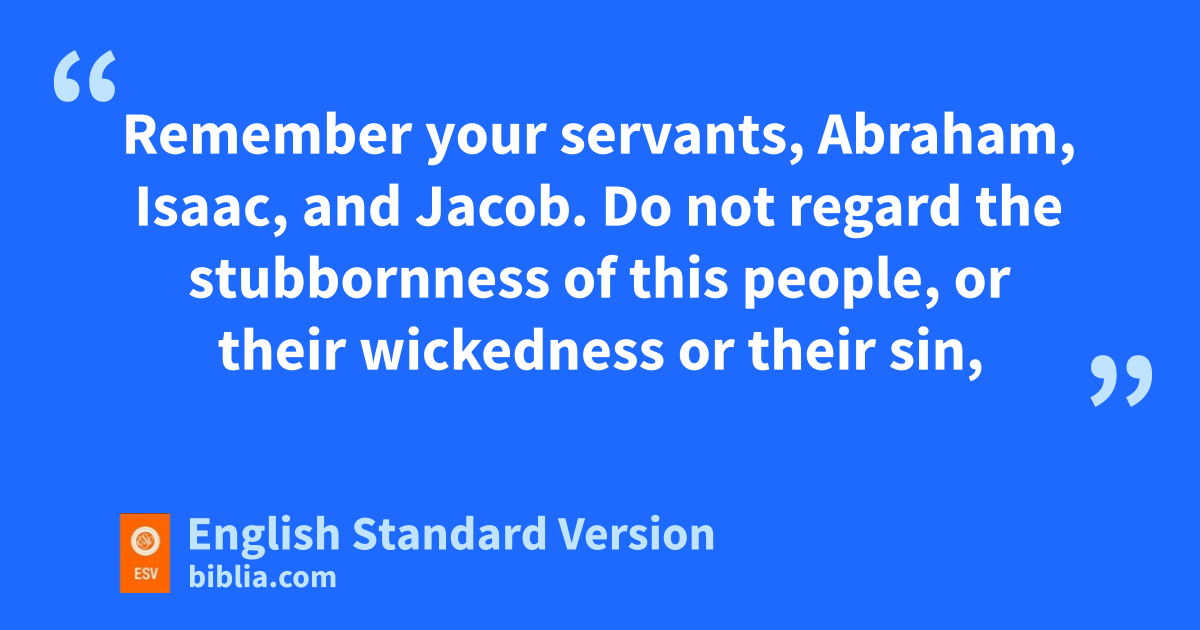 25 x“So I lay prostrate before the Lord for these forty days and forty nights, because the Lord had said he would destroy you. 26 iAnd I prayed to the Lord, ‘O Lord God, do not destroy your people and your heritage, whom you have redeemed through your greatness, whom you have brought out of Egypt with a mighty hand. 27 Remember your servants, Abraham, Isaac, and Jacob. Do not regard the stubbornness of this people, or their wickedness or their sin, 28 lest the land from which you brought us say, j“Because the Lord was not able to bring them into the land that he promised them, and because he hated them, he has brought them out to put them to death in the wilderness.” 29 kFor they are your people and your heritage, whom you brought out by your great power and by your outstretched arm.’