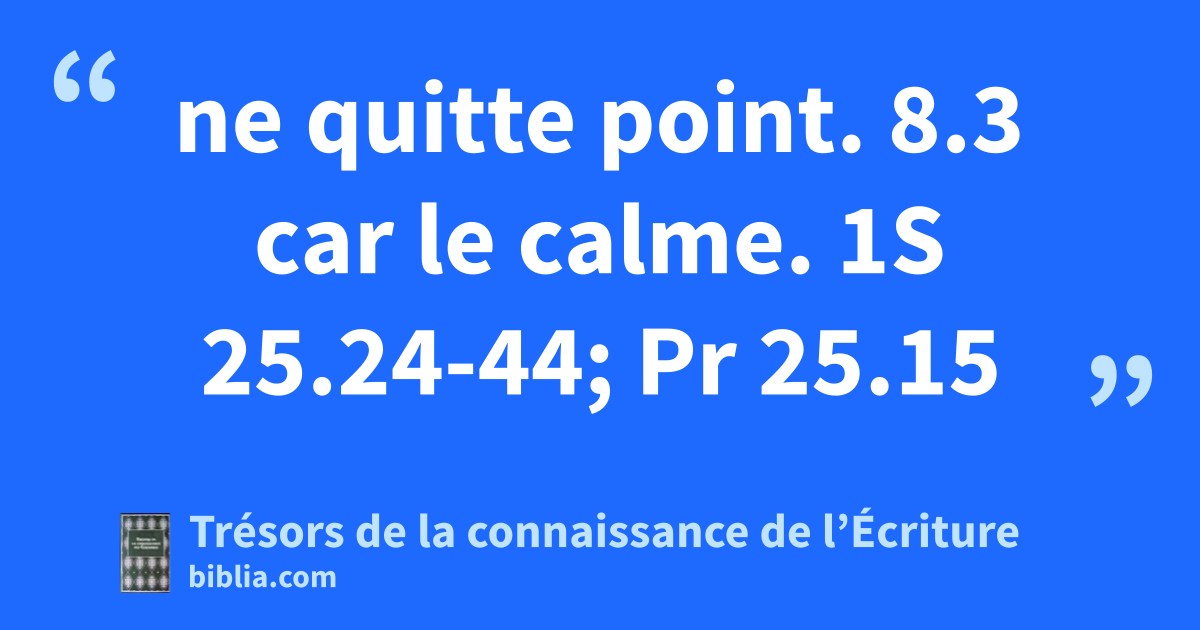 ne quitte point. 8.3 car le calme. 1S 25.24-44; Pr 25.15