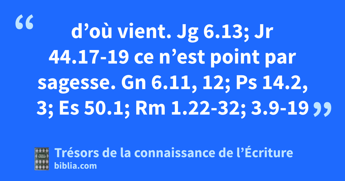 d’où vient. Jg 6.13; Jr 44.17-19 ce n’est point par sagesse. Gn 6.11, 12; Ps 14.2, 3; Es 50.1; Rm 1.22-32; 3.9-19