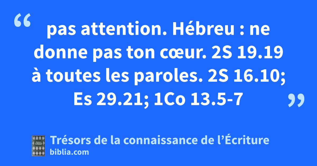 pas attention. Hébreu : ne donne pas ton cœur. 2S 19.19 à toutes les paroles. 2S 16.10; Es 29.21; 1Co 13.5-7