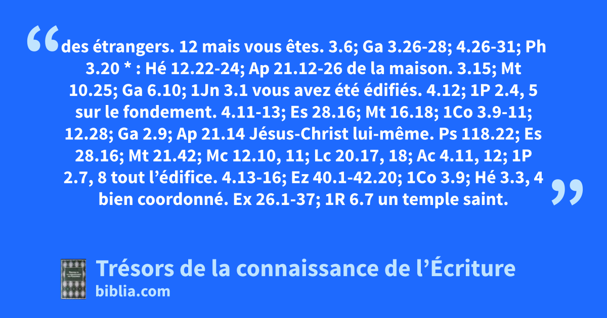 des étrangers. 12 mais vous êtes. 3.6; Ga 3.26-28; 4.26-31; Ph 3.20 * : Hé 12.22-24; Ap 21.12-26 de la maison. 3.15; Mt 10.25; Ga 6.10; 1Jn 3.1