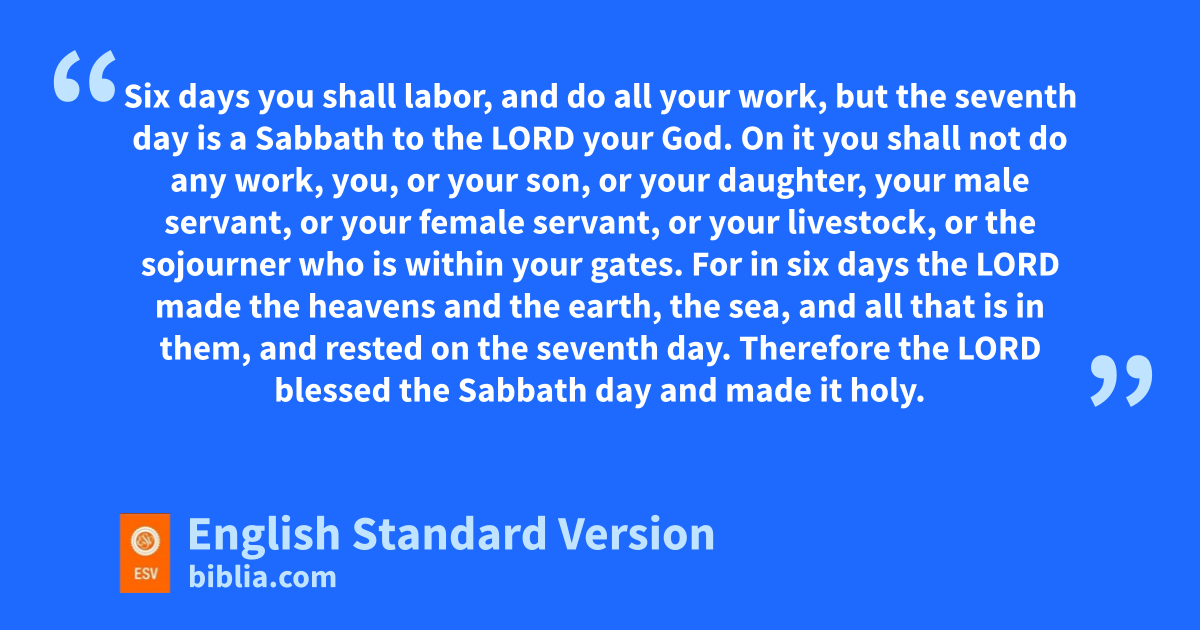 8 i“Remember the Sabbath day, to keep it holy. 9 jSix days you shall labor, and do all your work, 10 but the kseventh day is a Sabbath to the Lord your God. On it you shall not do any work, you, or your son, or your daughter, your male servant, or your female servant, or your livestock, or the lsojourner who is within your gates. 11 For min six days the Lord made the heavens and the earth, the sea, and all that is in them, and rested on the seventh day. Therefore the Lord blessed the Sabbath day and made it holy.
