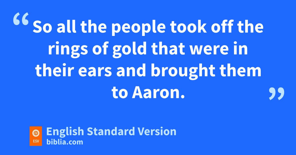 32 When the people saw that Moses vdelayed to come down from the mountain, the people gathered themselves together to Aaron and said to him, w“Up, make us gods who shall xgo before us. As for this Moses, the man who brought us up out of the land of Egypt, we do not know what has become of him.” 2 So Aaron said to them, “Take off the yrings of gold that are in the ears of your wives, your sons, and your daughters, and bring them to me.” 3 So all the people took off the rings of gold that were in their ears and brought them to Aaron. 4 zAnd he received the gold from their hand and fashioned it with a graving tool and made a golden1 calf. And they said, a“These are your gods, O Israel, who brought you up out of the land of Egypt!” 5 When Aaron saw this, he built an altar before it. And Aaron bmade a proclamation and said, “Tomorrow shall be a feast to the Lord.” 6 And they rose up early the next day and offered burnt offerings and brought peace offerings. And cthe people sat down to eat and drink and rose up dto play.