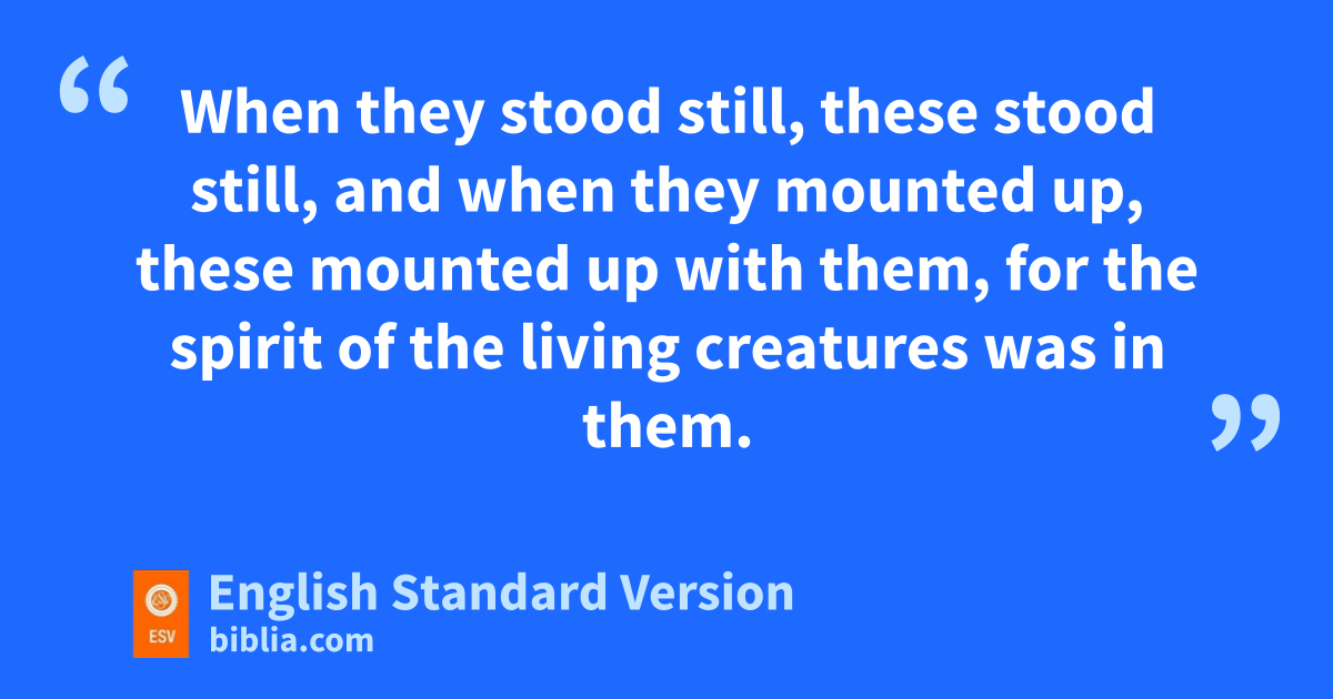 15 aAnd the cherubim mounted up. These were bthe living creatures that I saw by cthe Chebar canal. 16 dAnd when the cherubim went, the wheels went beside them. And dwhen the cherubim lifted up their wings to mount up from the earth, the wheels did not turn from beside them. 17 eWhen they stood still, these stood still, and when they mounted up, these mounted up with them, for the spirit of the living creatures5 was in them.