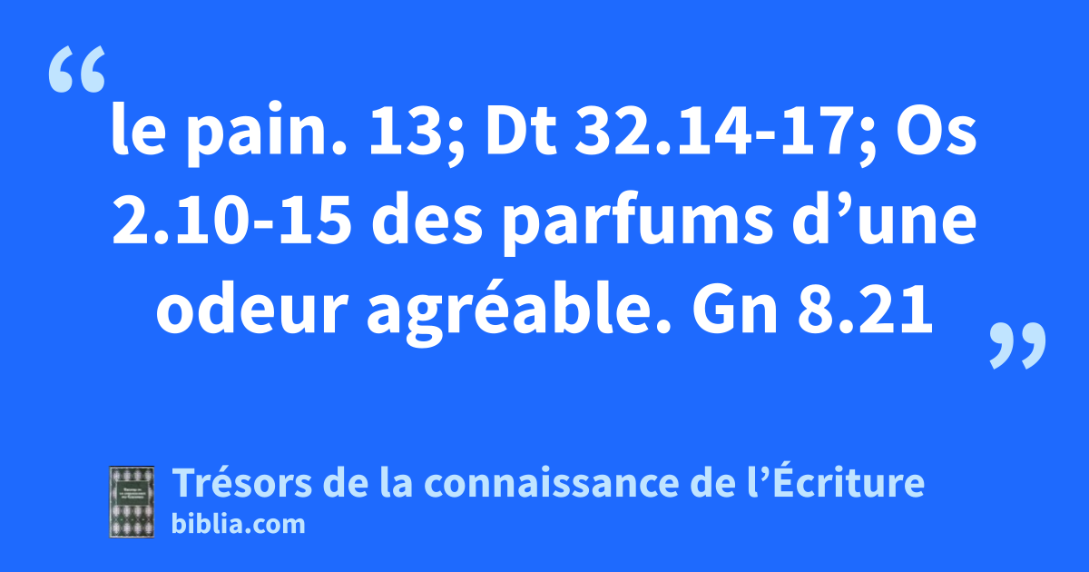 le pain. 13; Dt 32.14-17; Os 2.10-15 des parfums d’une odeur agréable. Gn 8.21