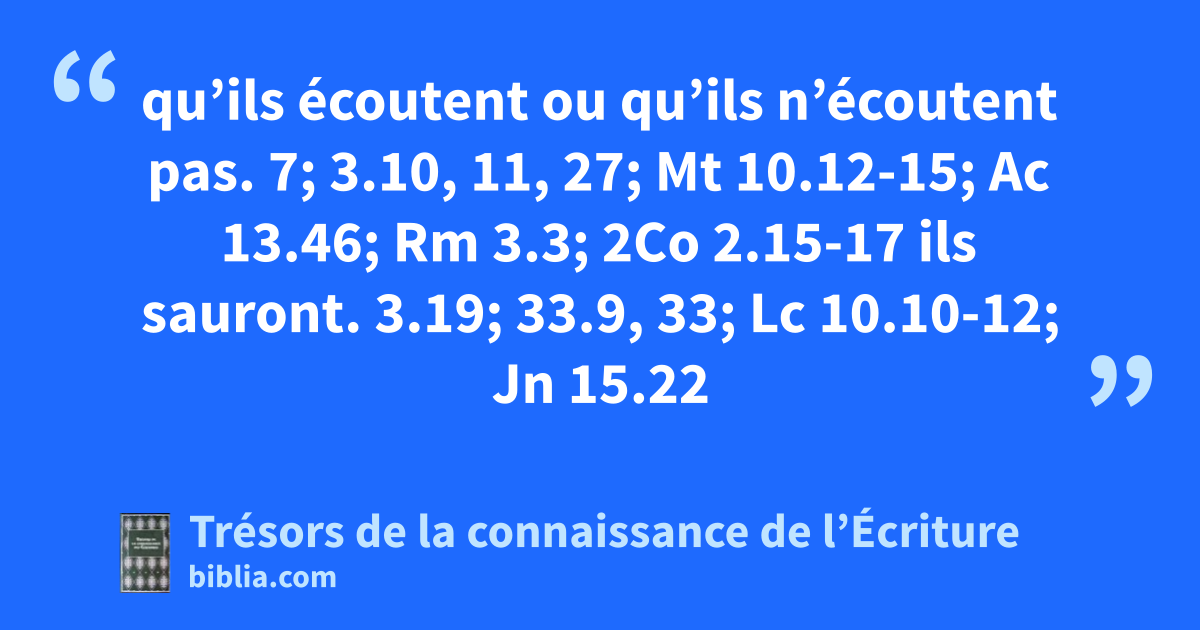 qu’ils écoutent ou qu’ils n’écoutent pas. 7; 3.10, 11, 27; Mt 10.12-15; Ac 13.46; Rm 3.3; 2Co 2.15-17 ils sauront. 3.19; 33.9, 33; Lc 10.10-12; Jn 15.22