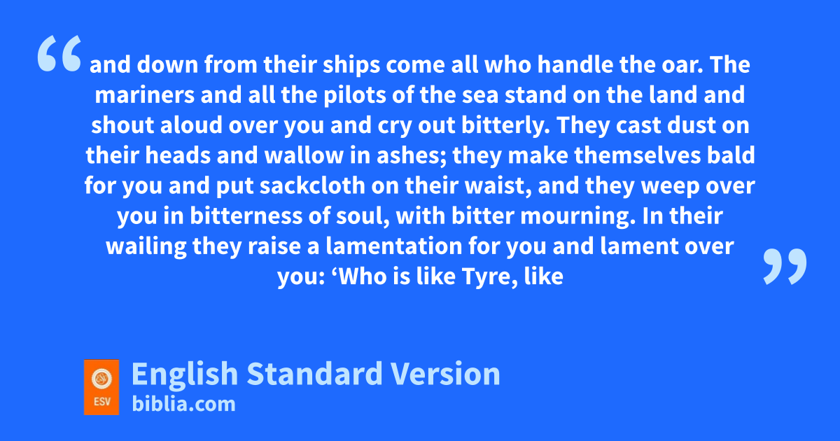 27 The word of the Lord came to me: 2 “Now you, tson of man, uraise a lamentation over Tyre, 3 and say to Tyre, who dwells at vthe entrances to the sea, wmerchant of the peoples to many coastlands, thus says the Lord God: