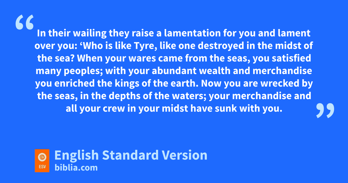 27 The word of the Lord came to me: 2 “Now you, tson of man, uraise a lamentation over Tyre, 3 and say to Tyre, who dwells at vthe entrances to the sea, wmerchant of the peoples to many coastlands, thus says the Lord God: