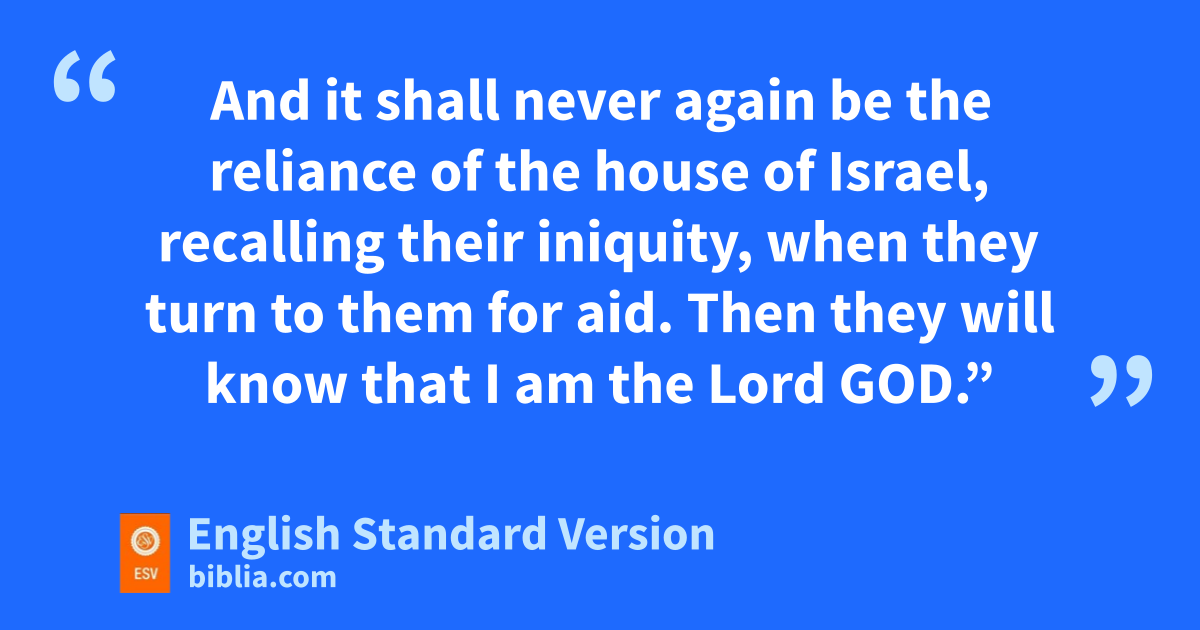 13 “For thus says the Lord God: At the end of forty years fI will gather the Egyptians from the peoples among whom they were scattered, 14 and gI will restore the fortunes of Egypt and bring them back to hthe land of Pathros, the land of their origin, and there they shall be a lowly kingdom. 15 It shall be the most lowly of the kingdoms, iand never again exalt itself above the nations. And I will make them so small that they will never again rule over the nations. 16 And it shall never again be jthe reliance of the house of Israel, recalling their iniquity, when they turn to them for aid. kThen they will know that I am the Lord God.”