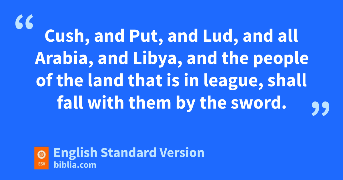 5 bCush, and ePut, and Lud, and fall Arabia, and Libya,3 and the people of the land that is in league,4 shall fall with them by the sword.