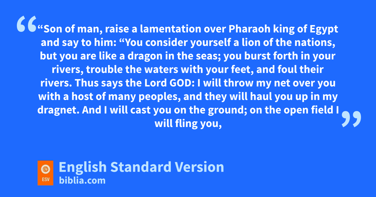 32 eIn the twelfth year, in the twelfth month, on the first day of the month, the word of the Lord came to me: 2 f“Son of man, graise a lamentation over hPharaoh king of Egypt and say to him: