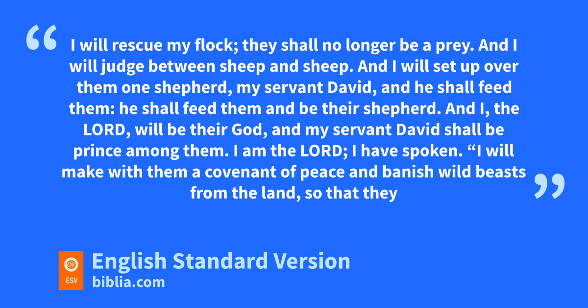 20 “Therefore, thus says the Lord God to them: Behold, I, I myself will judge between the fat sheep and the lean sheep. 21 Because you push with side and shoulder, and lthrust at all the mweak with your horns, till you have scattered them abroad, 22 I will rescue2 my flock; nthey shall no longer be a prey. And I will judge between sheep and sheep. 23 And oI will set up over them one shepherd, pmy servant David, and he shall feed them: he shall feed them and be their shepherd. 24 And qI, the Lord, will be their God, and my servant David shall be prince among them. rI am the Lord; I have spoken.