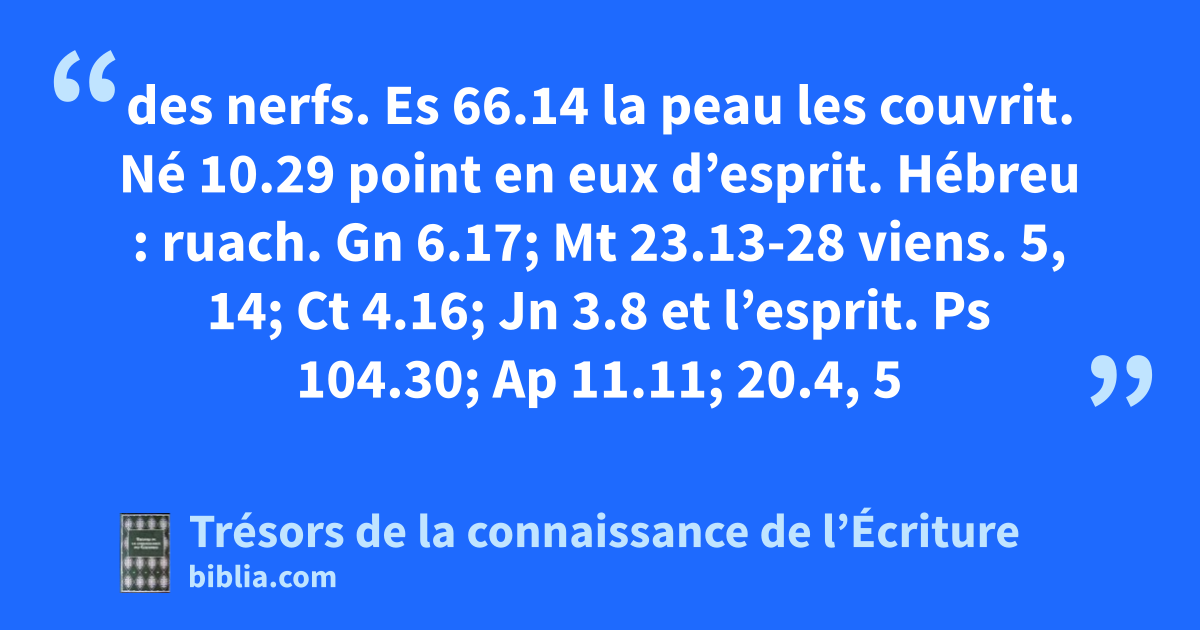 des nerfs. Es 66.14 la peau les couvrit. Né 10.29 point en eux d’esprit. Hébreu : ruach. Gn 6.17; Mt 23.13-28