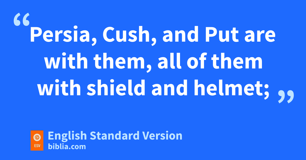 38 The word of the Lord came to me: 2 k“Son of man, lset your face toward mGog, of the land of nMagog, the ochief prince of pMeshech1 and pTubal, and qprophesy against him 3 and say, Thus says the Lord God: Behold, rI am against you, O Gog, chief prince of Meshech2 and Tubal. 4 sAnd I will turn you about and tput hooks into your jaws, and I will bring you out, and uall your army, horses and horsemen, all of them clothed in full armor, a great host, all of them with buckler and shield, wielding swords. 5 vPersia, wCush, and vPut are with them, all of them with shield and helmet; 6 xGomer and all his yhordes; zBeth-togarmah from athe uttermost parts of the north with all his hordes—umany peoples are with you.