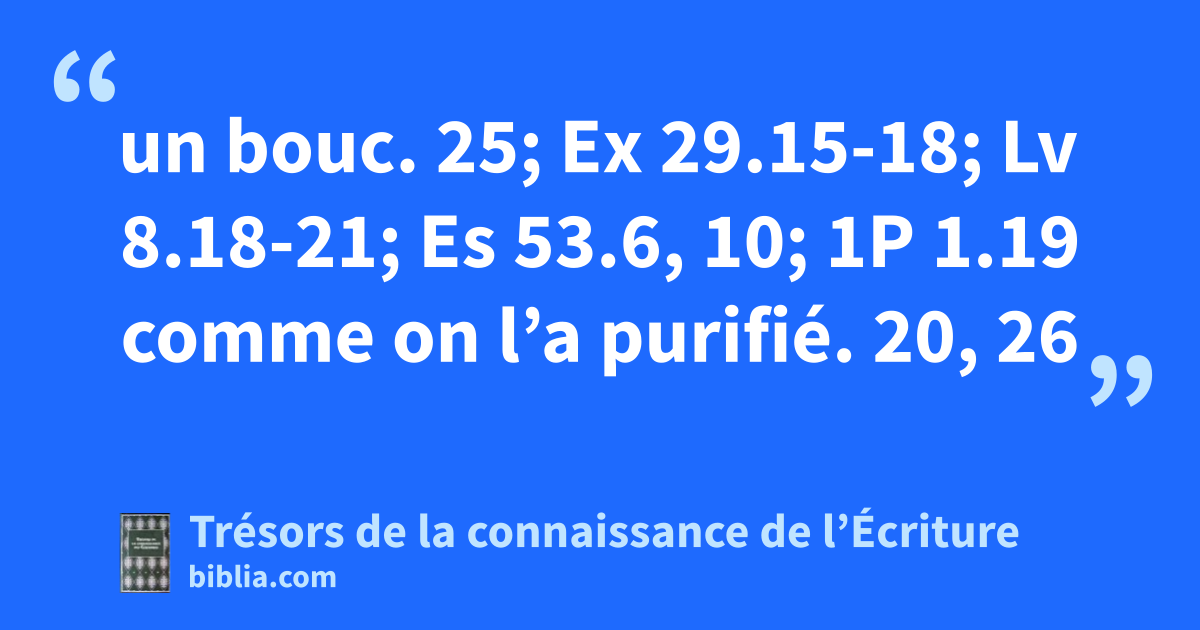 un bouc. 25; Ex 29.15-18; Lv 8.18-21; Es 53.6, 10; 1P 1.19 comme on l’a purifié. 20, 26