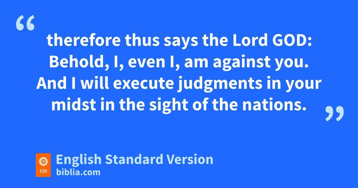 5 “Thus says the Lord God: lThis is Jerusalem. I have set her min the center of the nations, with countries all around her. 6 And she has rebelled against my rules by doing wickedness nmore than the nations, and against my statutes more than mthe countries all around her; for they have rejected my rules and have not walked in my statutes. 7 Therefore thus says the Lord God: Because you are omore turbulent than the nations that are all around you, pand have not walked in my statutes or obeyed my rules, qand have not1 even acted according to the rules of the nations that are all around you, 8 therefore thus says the Lord God: Behold, I, even I, ram against you. sAnd I will execute judgments2 in your midst tin the sight of the nations. 9 And because of all your abominations I will do with you uwhat I have never yet done, and the like of which I will never do again. 10 Therefore vfathers shall eat their sons in your midst, and sons shall eat their fathers. sAnd I will execute judgments on you, wand any of you who survive I will scatter to all the winds. 11 Therefore, xas I live, declares the Lord God, surely, ybecause you have defiled my sanctuary zwith all your detestable things and with all your aabominations, btherefore I will withdraw.3 cMy eye will not spare, and I will have no pity. 12 dA third part of you shall die of pestilence and be consumed with famine in your midst; da third part shall fall by the sword all around you; dand a third part I will scatter to all the winds and will unsheathe the sword after them.
