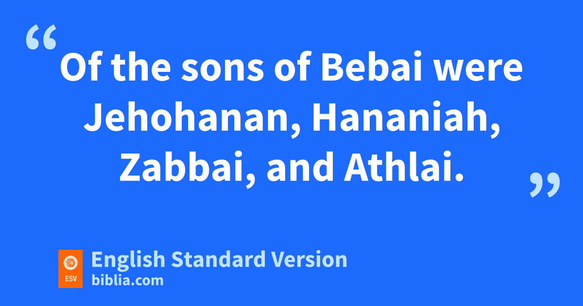 25 And of Israel: of the sons of Parosh: Ramiah, Izziah, Malchijah, Mijamin, Eleazar, Hashabiah,5 and Benaiah. 26 Of the sons of Elam: Mattaniah, Zechariah, Jehiel, Abdi, Jeremoth, and Elijah. 27 Of the sons of Zattu: Elioenai, Eliashib, Mattaniah, Jeremoth, Zabad, and Aziza. 28 Of the sons of Bebai were Jehohanan, Hananiah, Zabbai, and Athlai. 29 Of the sons of Bani were Meshullam, Malluch, Adaiah, Jashub, Sheal, and Jeremoth. 30 Of the sons of Pahath-moab: Adna, Chelal, Benaiah, Maaseiah, Mattaniah, Bezalel, Binnui, and Manasseh. 31 Of the lsons of Harim: Eliezer, Isshijah, Malchijah, Shemaiah, Shimeon, 32 Benjamin, Malluch, and Shemariah. 33 Of the sons of Hashum: Mattenai, Mattattah, Zabad, Eliphelet, Jeremai, Manasseh, and Shimei. 34 Of the sons of mBani: Maadai, Amram, Uel, 35 Benaiah, Bedeiah, Cheluhi, 36 Vaniah, Meremoth, Eliashib, 37 Mattaniah, Mattenai, Jaasu. 38 Of the sons of Binnui:6 Shimei, 39 Shelemiah, Nathan, Adaiah, 40 Machnadebai, Shashai, Sharai, 41 Azarel, Shelemiah, Shemariah, 42 Shallum, Amariah, and Joseph. 43 Of the sons of Nebo: Jeiel, Mattithiah, Zabad, Zebina, Jaddai, Joel, and Benaiah. 44 All these had married foreign women, and some of the women nhad even borne children.7
