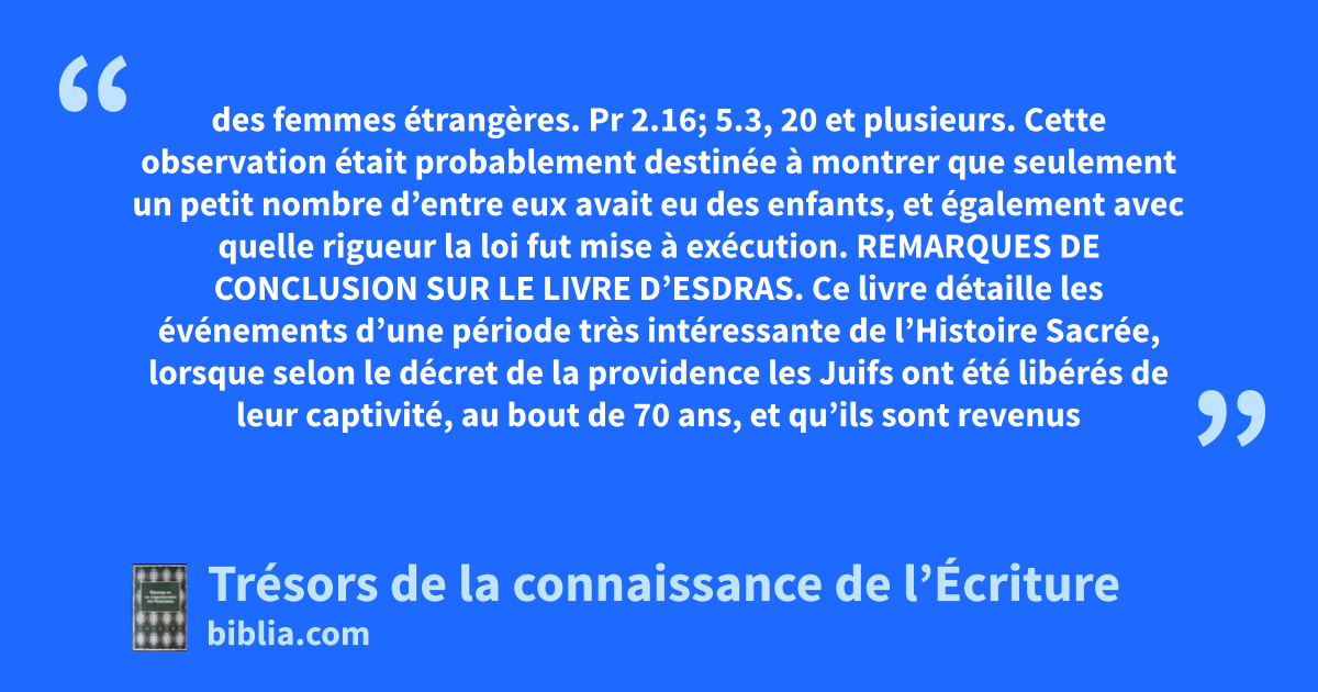 des femmes étrangères. Pr 2.16; 5.3, 20 et plusieurs. Cette observation était probablement destinée à montrer que seulement un petit nombre d’entre eux avait eu des enfants, et également avec quelle rigueur la loi fut mise à exécution.