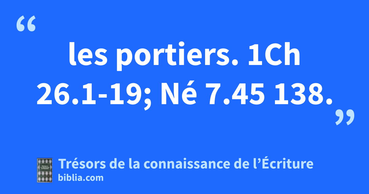les portiers. 1Ch 26.1-19; Né 7.45 138.