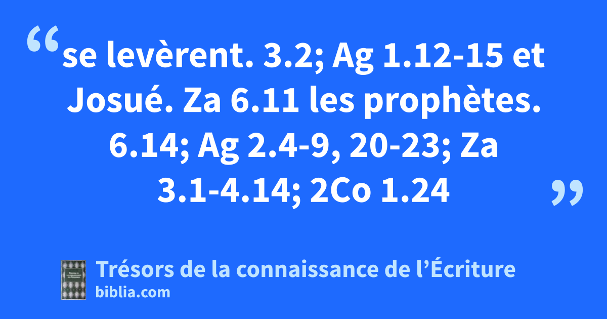 se levèrent. 3.2; Ag 1.12-15 et Josué. Za 6.11 les prophètes. 6.14; Ag 2.4-9, 20-23; Za 3.1-4.14; 2Co 1.24