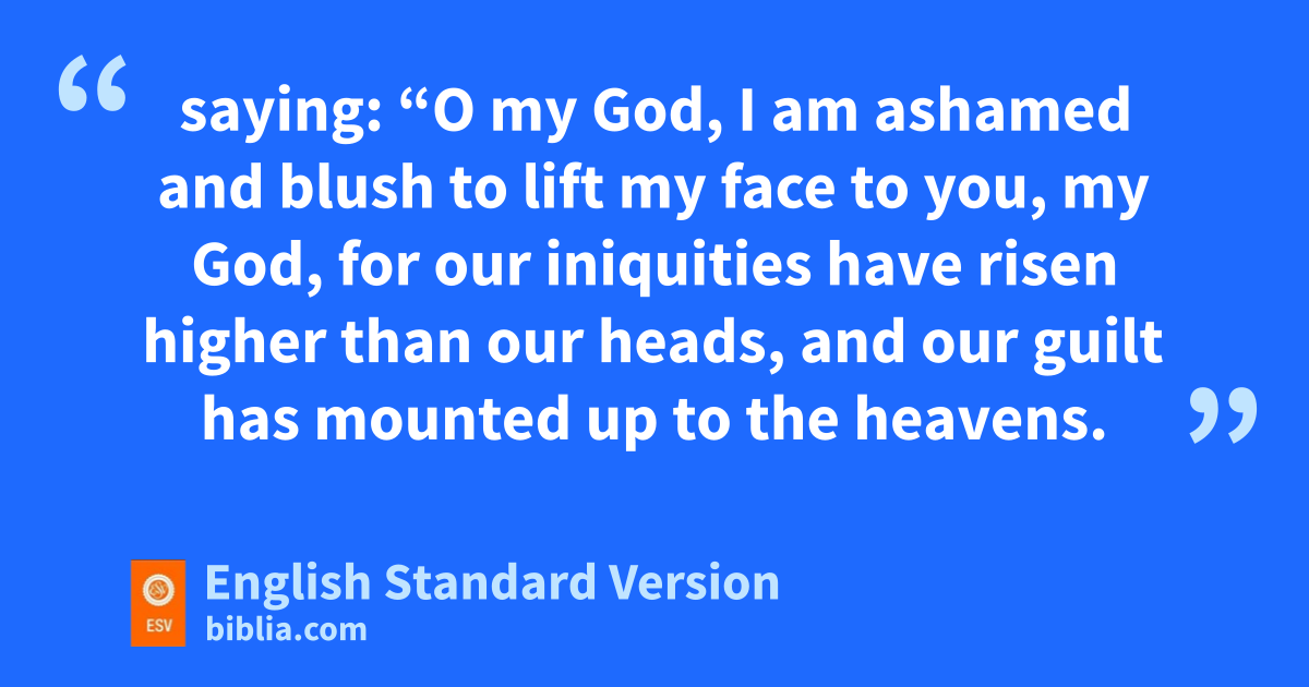 “O my God, I am ashamed and blush to lift my face to you, my God, for our iniquities phave risen higher than our heads, and our qguilt has rmounted up to the heavens. 7 sFrom the days of our fathers to this day we have been in great qguilt. And for our iniquities we, our kings, and our priests have been given into the hand of the kings of the lands, to the sword, to captivity, to plundering, tand to utter shame, as it is today. 8 But now for a brief moment favor has been shown by the Lord our God, to leave us a uremnant and to give us a vsecure hold2 within his holy place, that our God may wbrighten our eyes and grant us a little reviving in our slavery. 9 xFor we are slaves. Yet our God has not forsaken us in our slavery, ybut has extended to us his steadfast love before the kings of Persia, to grant us some reviving to set up the house of our God, to repair its ruins, and to give us protection3 in Judea and Jerusalem.