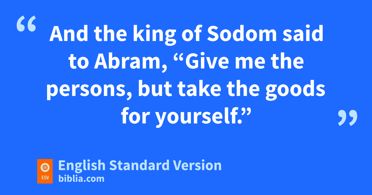 And Abram gave him ya tenth of everything. 21 And the king of Sodom said to Abram, “Give me the persons, but take the goods for yourself.” 22 But Abram said to the king of Sodom, z“I have lifted my hand3 to the Lord, God Most High, Possessor of heaven and earth, 23 that aI would not take a thread or a sandal strap or anything that is yours, lest you should say, ‘I have made Abram rich.’ 24 I will take nothing but what the young men have eaten, and the share of the men who went with me. Let bAner, Eshcol, and Mamre take their share.”