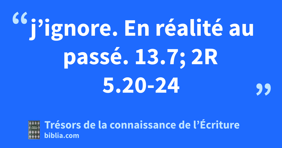 j’ignore. En réalité au passé. 13.7; 2R 5.20-24