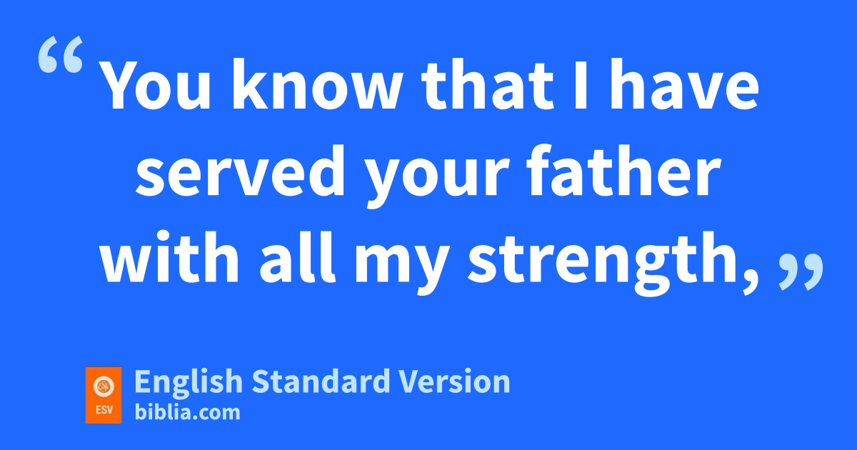 4 So Jacob sent and called Rachel and Leah into the field where his flock was 5 and said to them, c“I see that your father does not regard me with favor as he did before. But the God of my father dhas been with me. 6 eYou know that I have served your father with all my strength, 7 yet your father has cheated me and changed my wages ften times. But God did not permit him to harm me. 8 If he said, g‘The spotted shall be your wages,’ then all the flock bore spotted; and if he said, ‘The striped shall be your wages,’ then all the flock bore striped. 9 Thus God has htaken away the livestock of your father and given them to me. 10 In the breeding season of the flock I lifted up my eyes and saw in a dream that the goats that mated with the flock were striped, spotted, and mottled. 11 Then the angel of God said to me in the dream, ‘Jacob,’ and I said, ‘Here I am!’ 12 And he said, ‘Lift up your eyes and see, all the goats that mate with the flock are striped, spotted, and mottled, for iI have seen all that Laban is doing to you. 13 I am the God of Bethel, jwhere you anointed a pillar and made a vow to me. Now karise, go out from this land and return to the land of your kindred.’ ” 14 Then Rachel and Leah answered and said to him, “Is there lany portion or inheritance left to us in our father’s house? 15 Are we not regarded by him as foreigners? For mhe has sold us, and he has indeed devoured our money. 16 All the wealth that God has taken away from our father belongs to us and to our children. Now then, whatever God has said to you, do.”