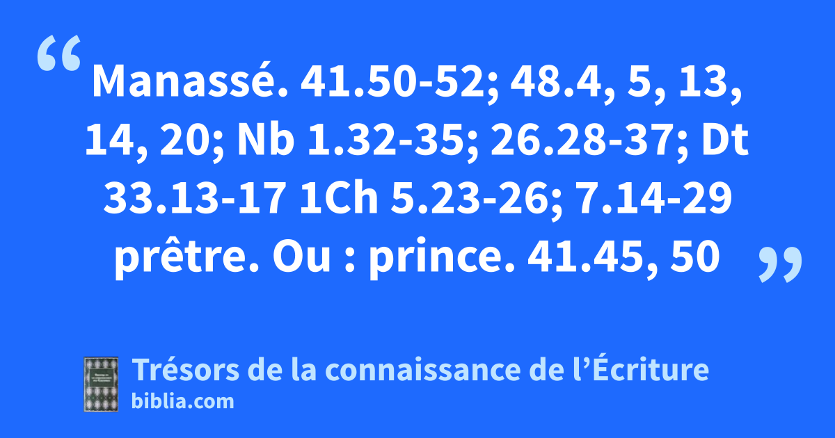 Manassé. 41.50-52; 48.4, 5, 13, 14, 20; Nb 1.32-35; 26.28-37; Dt 33.13-17 1Ch 5.23-26; 7.14-29 prêtre. Ou : prince. 41.45, 50