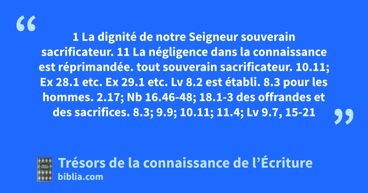 tout souverain sacrificateur. 10.11; Ex 28.1 etc. Ex 29.1 etc. Lv 8.2 est établi. 8.3 pour les hommes. 2.17; Nb 16.46-48; 18.1-3 des offrandes et des sacrifices. 8.3; 9.9; 10.11; 11.4; Lv 9.7, 15-21