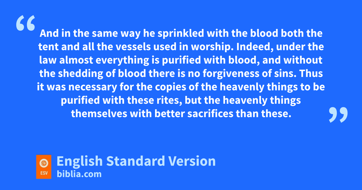 15 Therefore he is vthe mediator of a new covenant, so that wthose who are called may xreceive the promised eternal inheritance, ysince a death has occurred that redeems them from the transgressions committed under the first covenant.8 16 For where a will is involved, the death of the one who made it must be established. 17 For za will takes effect only at death, since it is not in force as long as the one who made it is alive. 18 Therefore not even the first covenant was inaugurated awithout blood. 19 For when every commandment of the law had been declared by Moses to all the people, he took bthe blood of calves and goats, cwith water and scarlet wool and hyssop, and sprinkled both the book itself and all the people, 20 saying, d“This is the blood of the covenant that God commanded for you.” 21 And in the same way he sprinkled with the blood both ethe tent and all the vessels used in worship. 22 Indeed, under the law almost everything is purified with blood, and fwithout the shedding of blood there is no forgiveness of sins.