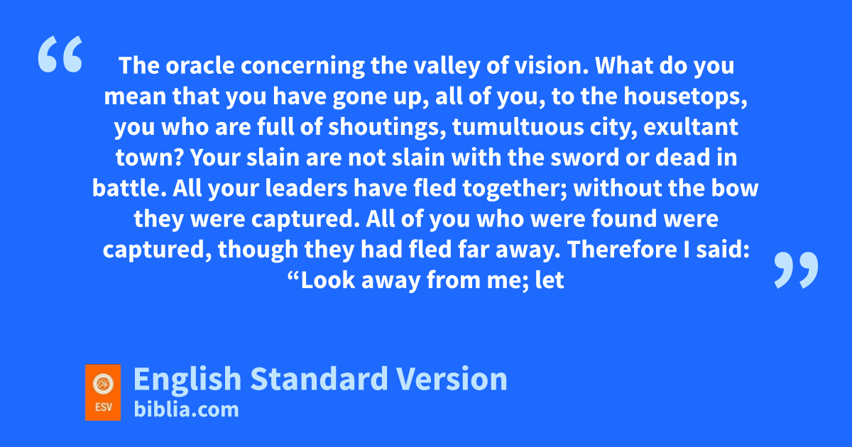 15 Thus says the Lord God of hosts, “Come, go to this steward, to vShebna, who is over the household, and say to him: 16 What have you to do here, and whom have you here, wthat you have cut out here a tomb for yourself, you xwho cut out a tomb on the height and carve a dwelling for yourself in the rock? 17 Behold, the Lord will hurl you away violently, O you strong man. yHe will seize firm hold on you 18 and whirl you around and around, and throw you like a ball into a wide land. There you shall die, and there shall be zyour glorious chariots, you shame of your master’s house. 19 aI will thrust you from your office, and you will be pulled down from your station. 20 In that day I will call my servant bEliakim the son of Hilkiah, 21 and bI will clothe him with your robe, and will bind your sash on him, and will commit your authority to his hand. And he shall be ca father to the inhabitants of Jerusalem and to the house of Judah. 22 And I will place don his shoulder ethe key of the house of David. fHe shall open, and none shall shut; and he shall shut, and none shall open. 23 And I will fasten him glike a peg in a secure place, and he will become ha throne of honor to his father’s house. 24 And they will hang on him the whole honor of his father’s house, the offspring and issue, every small vessel, from the cups to all the flagons. 25 In that day, declares the Lord of hosts, gthe peg that was fastened in a secure place will give way, and it will be cut down and fall, and the load that was on it will be cut off, for the Lord has spoken.”