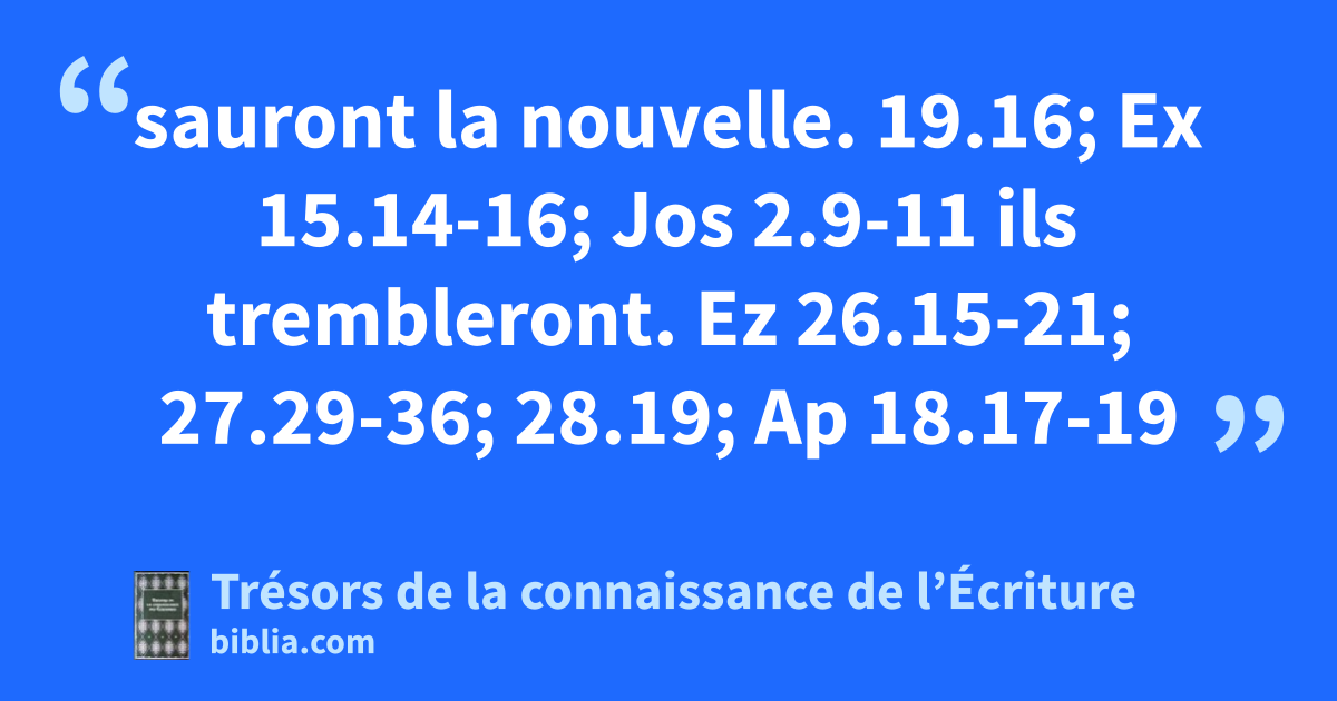 sauront la nouvelle. 19.16; Ex 15.14-16; Jos 2.9-11 ils trembleront. Ez 26.15-21; 27.29-36; 28.19; Ap 18.17-19