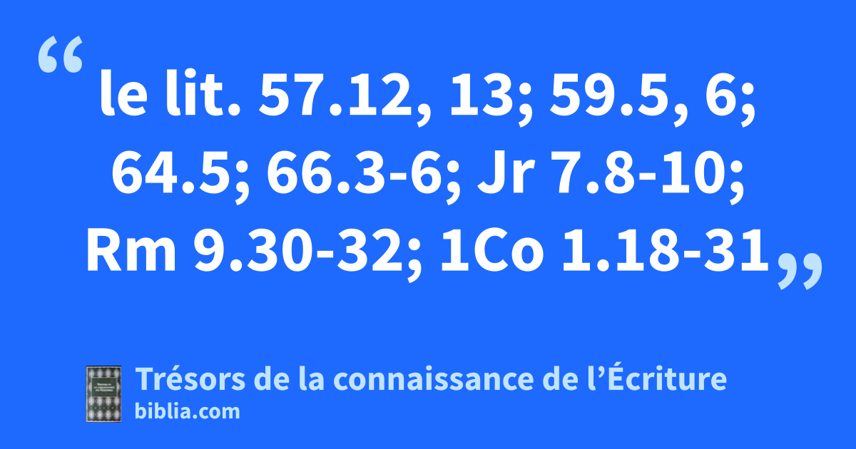 le lit. 57.12, 13; 59.5, 6; 64.5; 66.3-6; Jr 7.8-10; Rm 9.30-32; 1Co 1.18-31