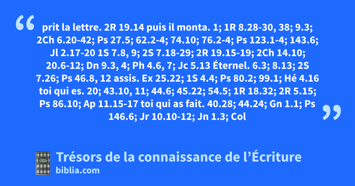 prit la lettre. 2R 19.14 puis il monta. 1; 1R 8.28-30, 38; 9.3; 2Ch 6.20-42; Ps 27.5; 62.2-4; 74.10; 76.2-4; Ps 123.1-4; 143.6; Jl 2.17-20