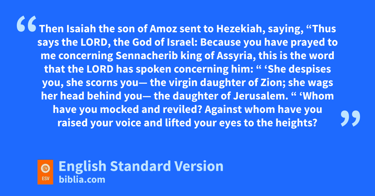 21 Then Isaiah the son of Amoz sent to Hezekiah, saying, “Thus says the Lord, the God of Israel: Because you have prayed to me concerning Sennacherib king of Assyria, 22 this is the word that the Lord has spoken concerning him: