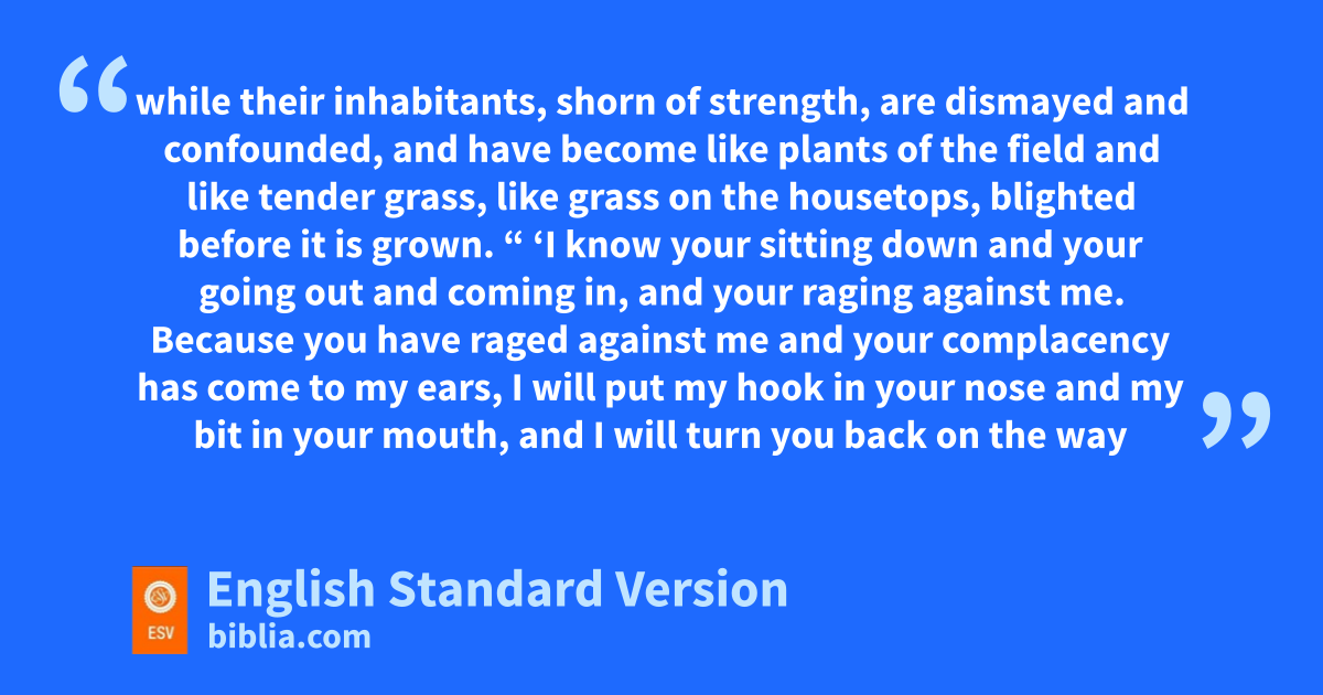 33 “Therefore thus says the Lord concerning the king of Assyria: He shall not come into this city or shoot an arrow there or come before it with a shield or jcast up a siege mound against it. 34 By the way that he came, by the same he shall return, and he shall not come into this city, declares the Lord. 35 kFor I will defend this city to save it, for my own sake and for lthe sake of my servant David.”