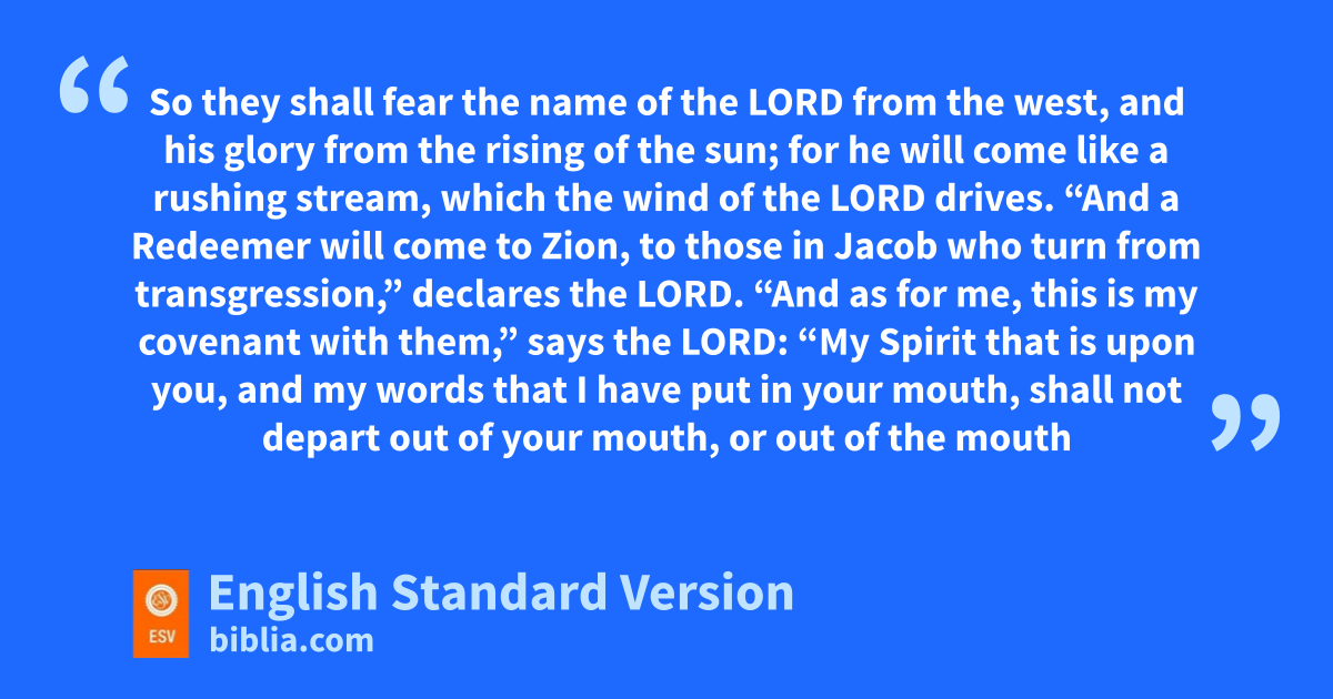 21 “And as for me, zthis is my covenant with them,” says the Lord: “My Spirit that is upon you, aand my words that I have put in your mouth, shall not depart out of your mouth, or out of the mouth of your offspring, or out of the mouth of your children’s offspring,” says the Lord, “from this time forth and forevermore.”