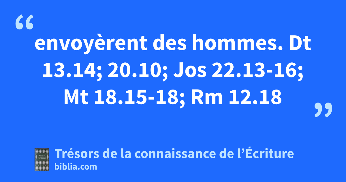 envoyèrent des hommes. Dt 13.14; 20.10; Jos 22.13-16; Mt 18.15-18; Rm 12.18
