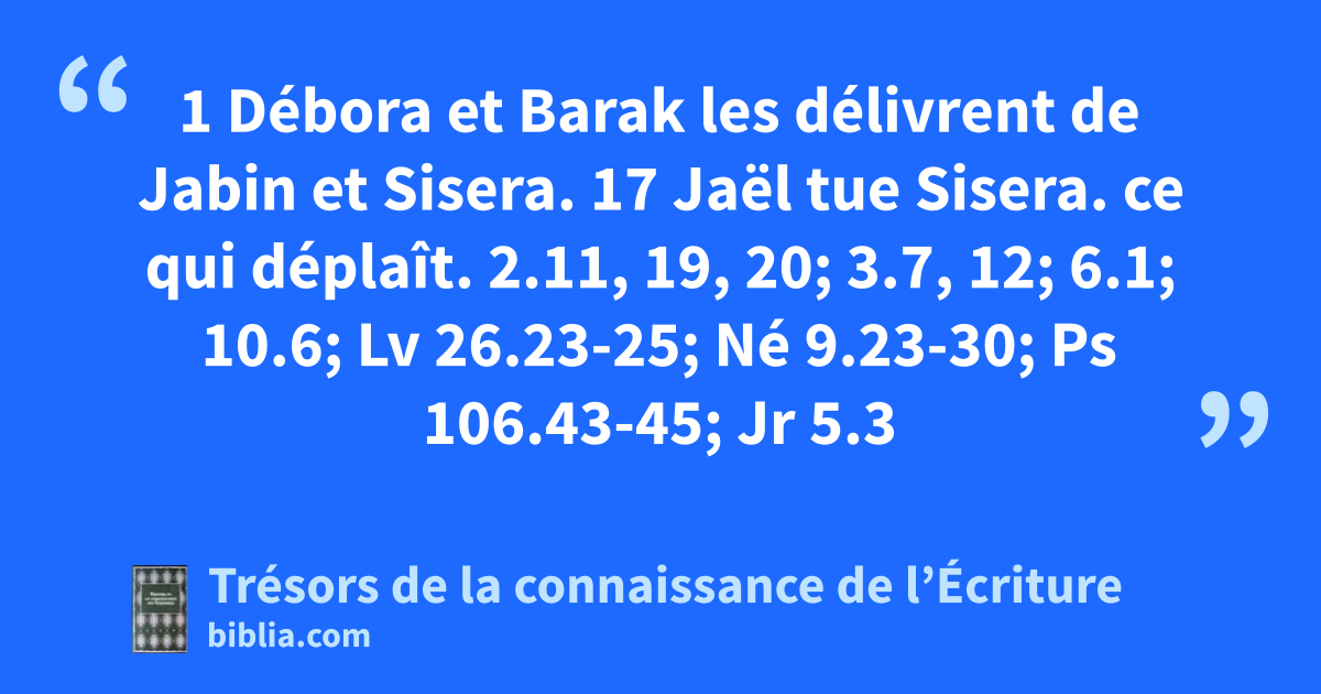 1 Débora et Barak les délivrent de Jabin et Sisera. 17 Jaël tue Sisera.