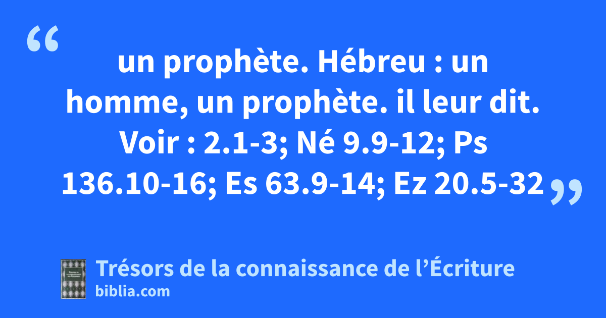 un prophète. Hébreu : un homme, un prophète. il leur dit. Voir : 2.1-3; Né 9.9-12; Ps 136.10-16; Es 63.9-14; Ez 20.5-32