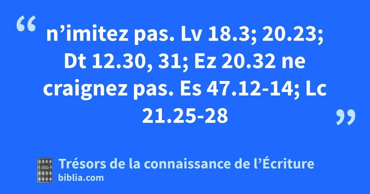 n’imitez pas. Lv 18.3; 20.23; Dt 12.30, 31; Ez 20.32 ne craignez pas. Es 47.12-14; Lc 21.25-28