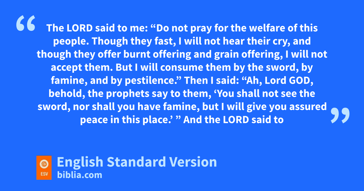 11 The Lord said to me: r“Do not pray for the welfare of this people. 12 Though they fast, I will not hear their cry, sand though they offer burnt offering and grain offering, I will not accept them. But I will consume them tby the sword, by famine, and by pestilence.”