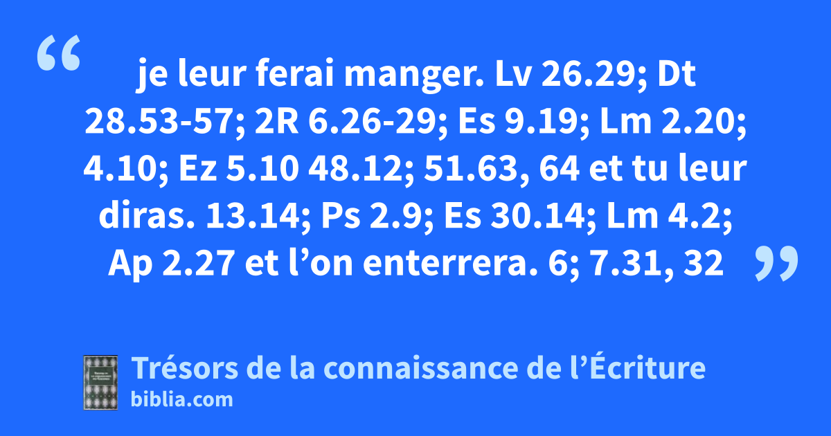 je leur ferai manger. Lv 26.29; Dt 28.53-57; 2R 6.26-29; Es 9.19; Lm 2.20; 4.10; Ez 5.10