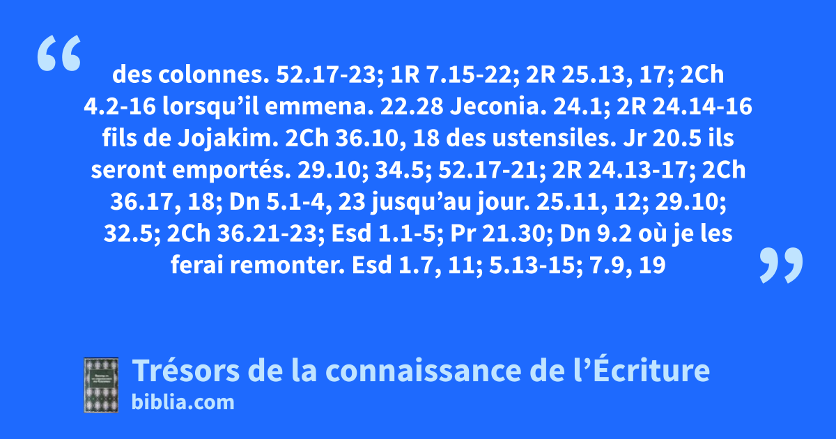 des colonnes. 52.17-23; 1R 7.15-22; 2R 25.13, 17; 2Ch 4.2-16
