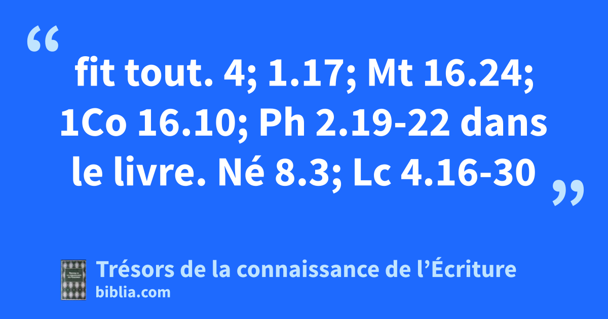 fit tout. 4; 1.17; Mt 16.24; 1Co 16.10; Ph 2.19-22 dans le livre. Né 8.3; Lc 4.16-30