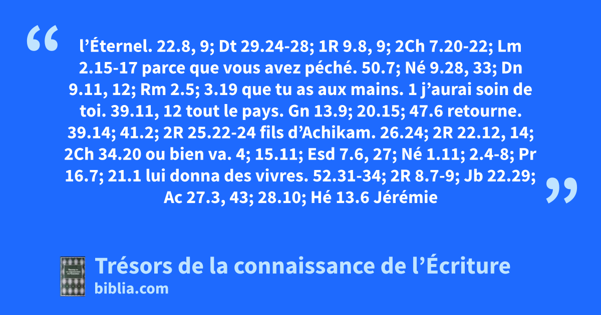 l’Éternel. 22.8, 9; Dt 29.24-28; 1R 9.8, 9; 2Ch 7.20-22; Lm 2.15-17