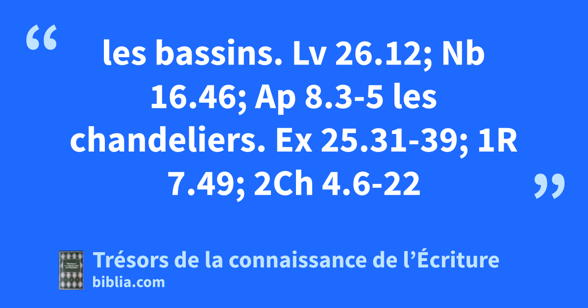 les bassins. Lv 26.12; Nb 16.46; Ap 8.3-5 les chandeliers. Ex 25.31-39; 1R 7.49; 2Ch 4.6-22