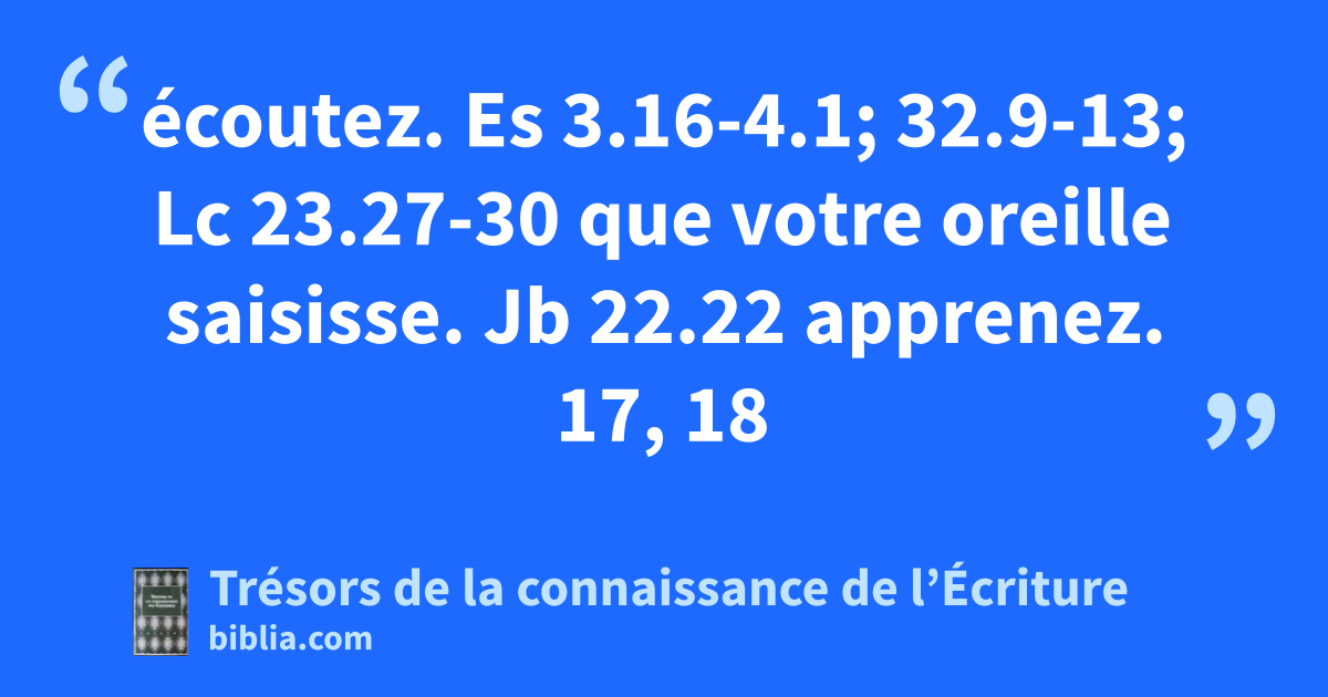écoutez. Es 3.16-4.1; 32.9-13; Lc 23.27-30 que votre oreille saisisse. Jb 22.22 apprenez. 17, 18
